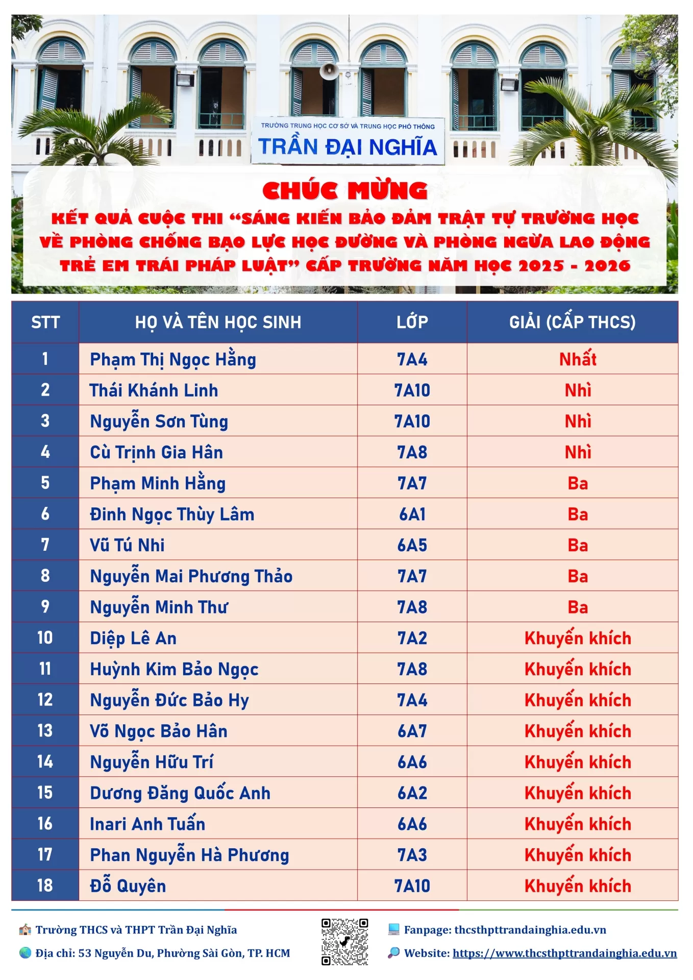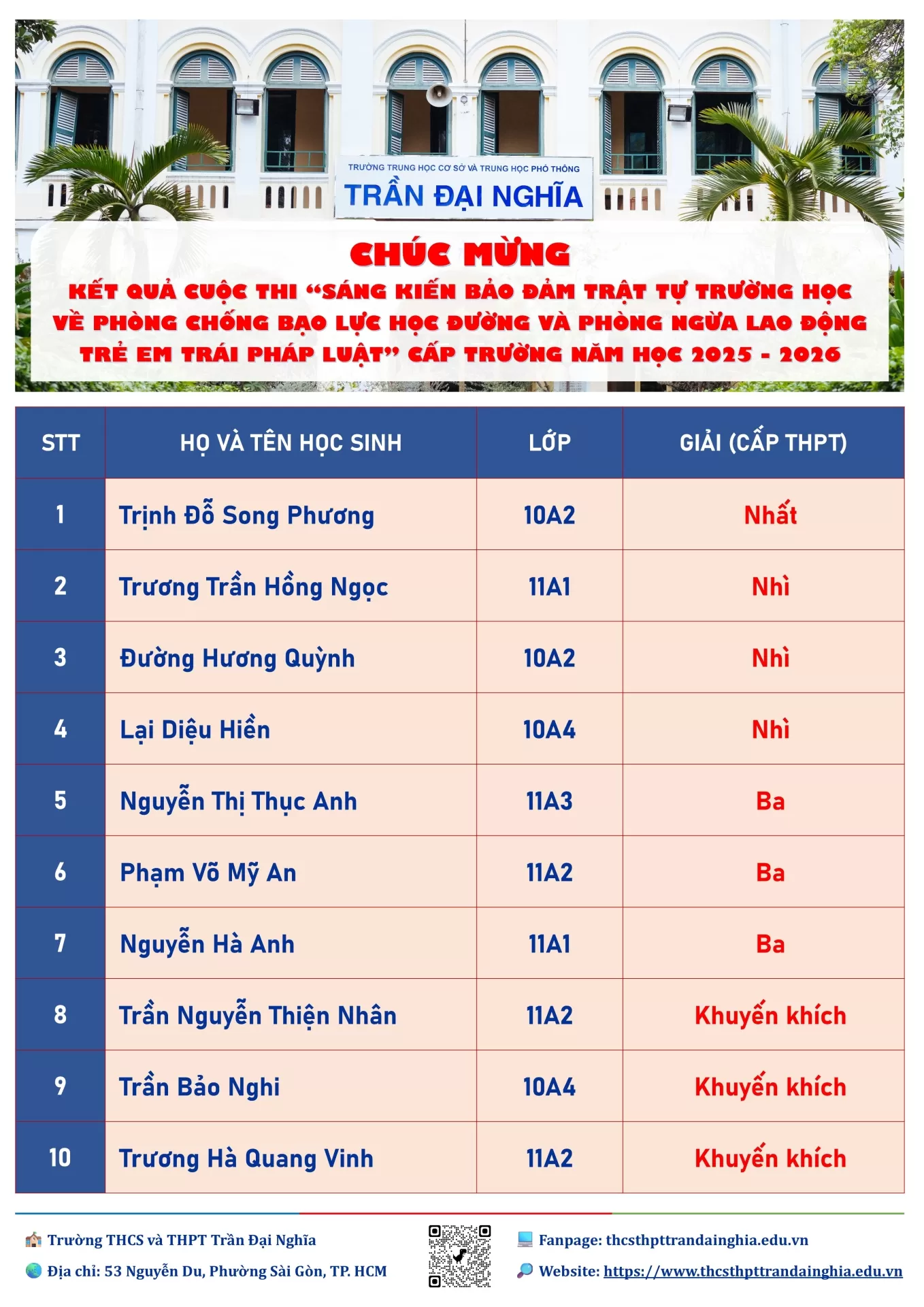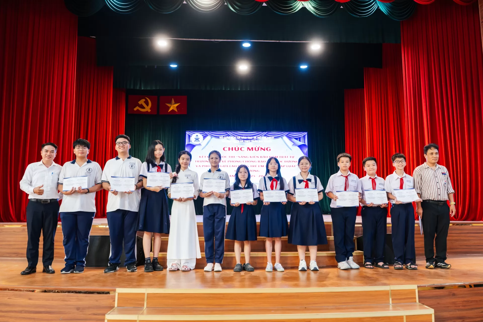 Chúc mừng kết quả và trao giải cuộc thi Sáng kiến bảo đảm trật tự trường học về phòng chống bạo lực học đường và phòng ngừa lao động trẻ em trái pháp luật cấp trường năm học 2025 - 2026.