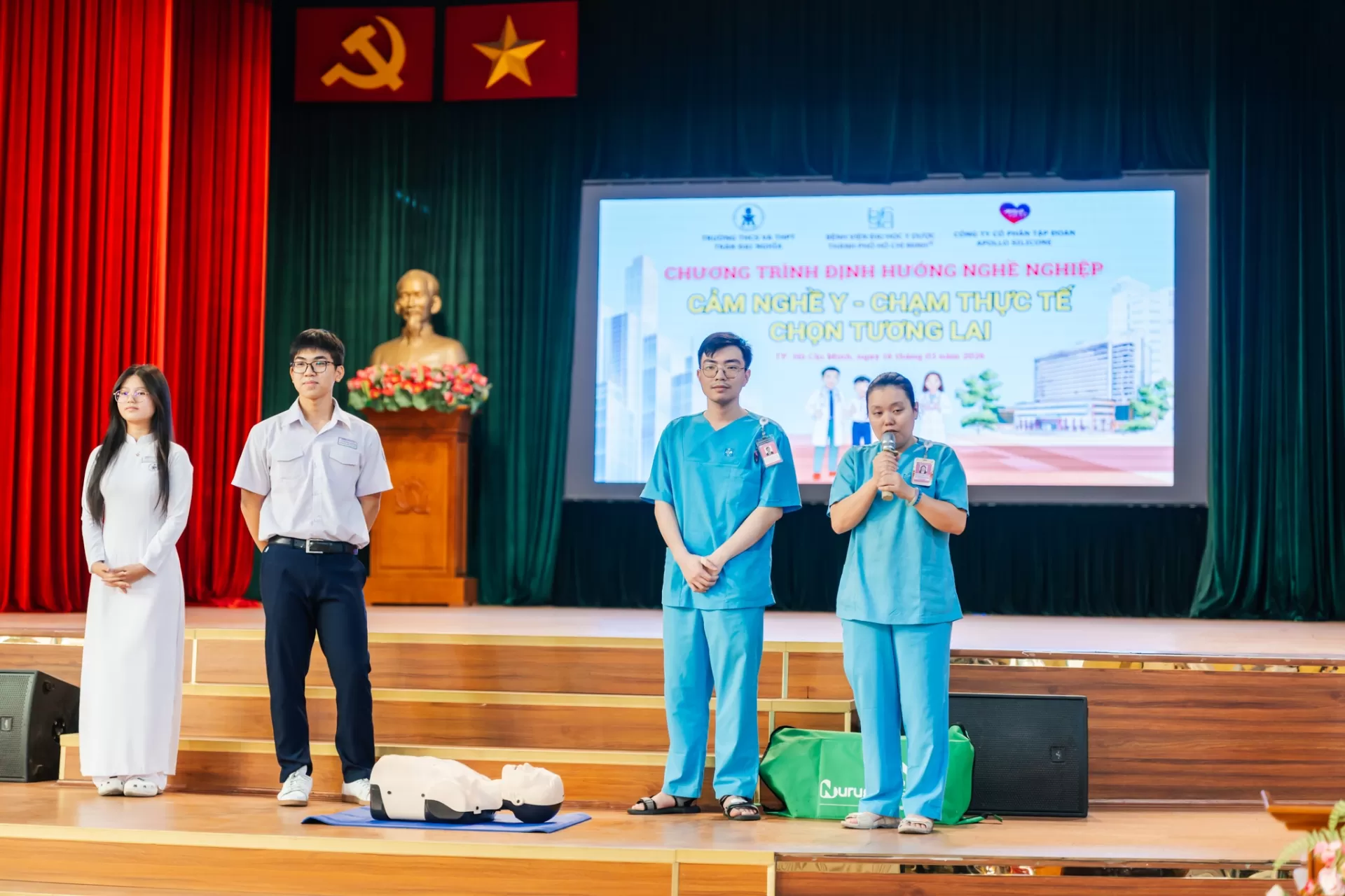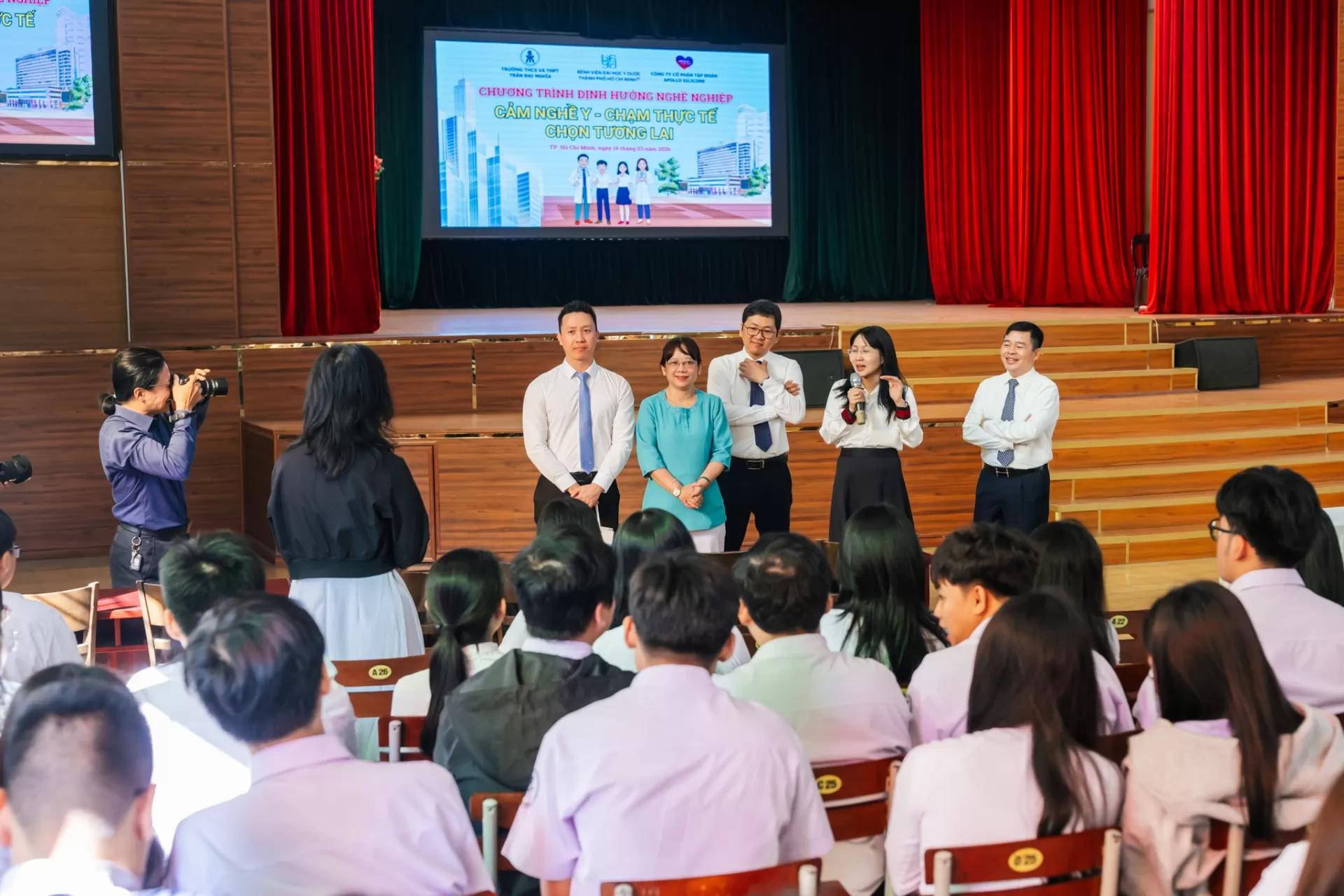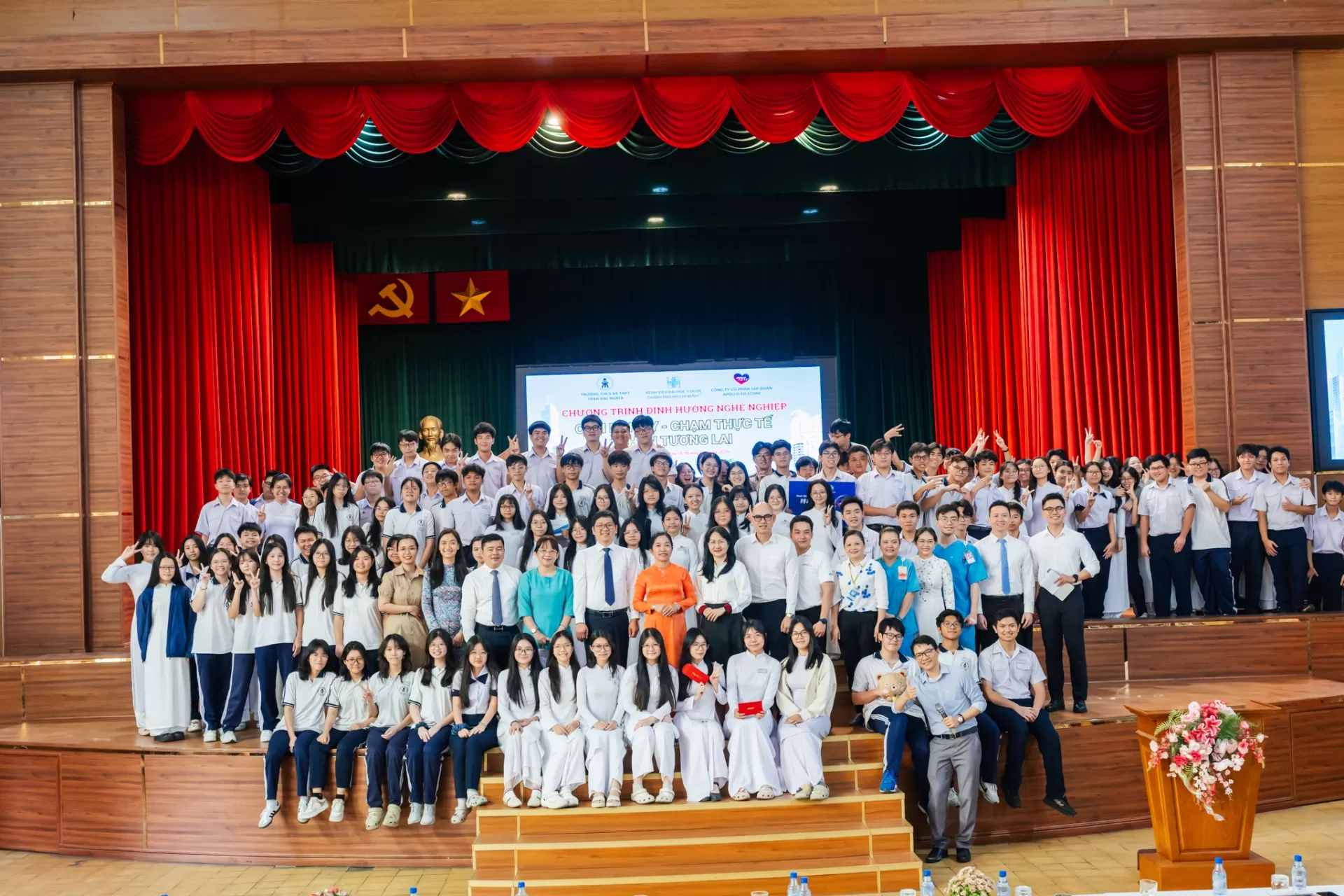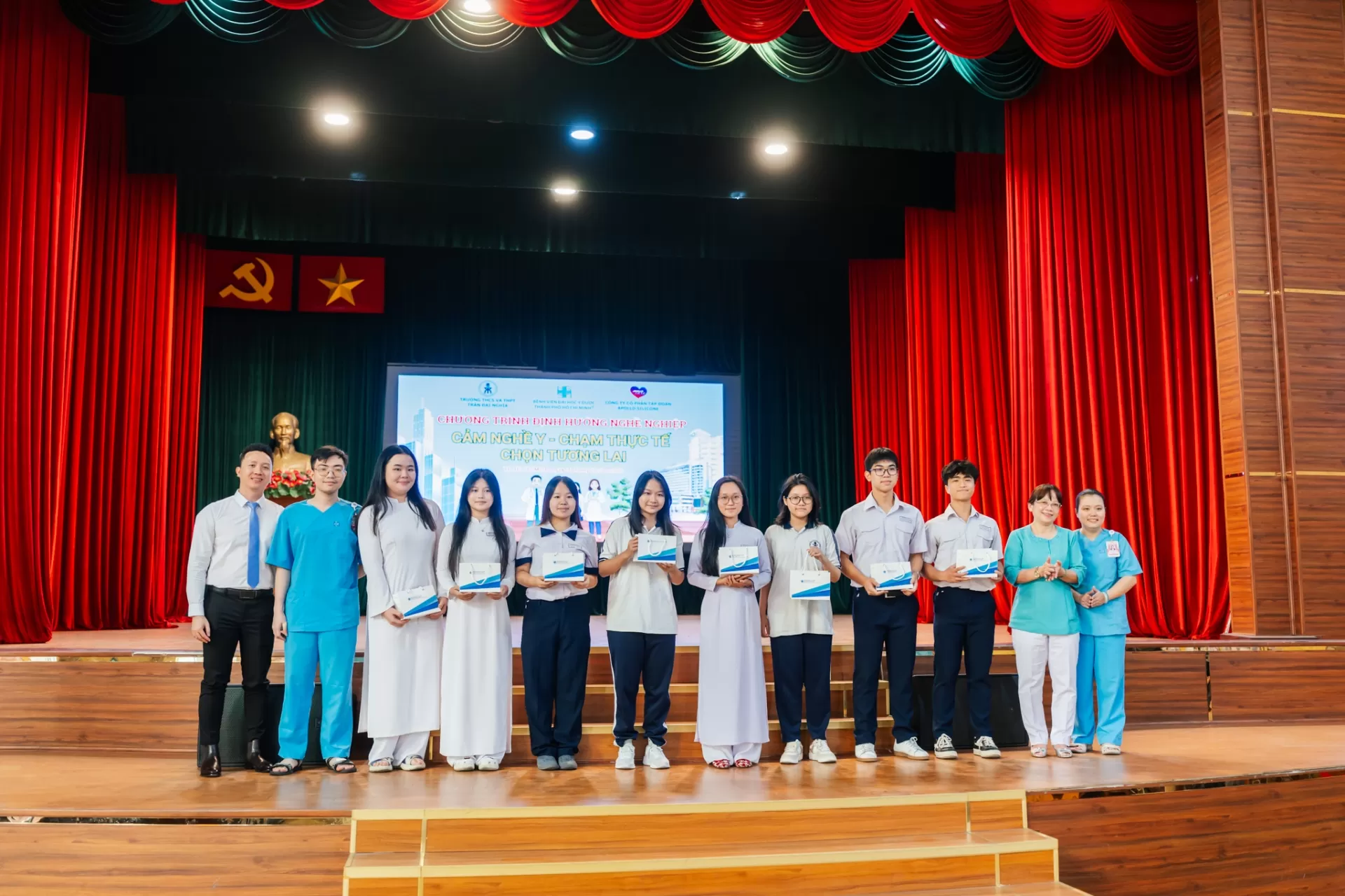 Sáng ngày 16 tháng 3 năm 2026, Trường THCS và THPT Trần Đại Nghĩa phối hợp Bệnh viện Đại học Y Dược TPHCM tổ chức Chương trình “CẢM NGHỀ Y – CHẠM THỰC TẾ – CHỌN TƯƠNG LAI” cho học sinh khối 10 và 11.