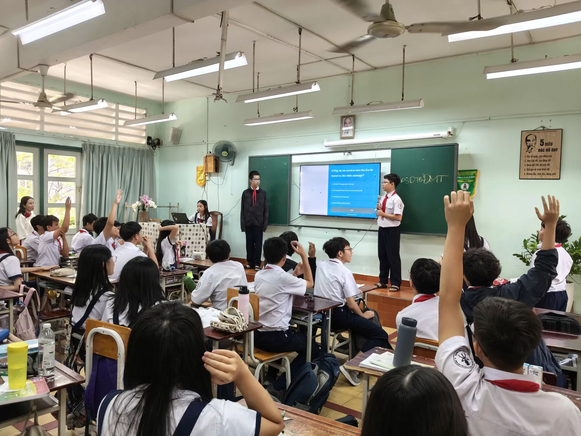 Sáng ngày 23/03/2026, tại phòng học của lớp 7A5 trường THCS & THPT Trần Đại Nghĩa đã diễn ra một tiết học vô cùng ý nghĩa và thú vị của môn Hoạt động trải nghiệm, hướng nghiệp 7. Dưới sự dẫn dắt của cô Phạm Hồng Phước, tập thể học sinh 7A5 đã tổ chức thành công tiết học với chủ đề “Góp phần giảm thiểu hiệu ứng nhà kính” sôi nổi, hiệu quả; đặc biệt tiết dạy này được cô và trò thực hiện hoàn toàn bằng tiếng Anh nhằm hưởng ứng đề án quốc gia “Đưa tiếng Anh trở thành ngôn ngữ thứ hai trong trường học” - một nội dung trọng tâm trong Kết luận số 91-KL/TW của Bộ Chính trị về đổi mới căn bản, toàn diện giáo dục và đào tạo. Trong xu thế hội nhập toàn cầu, tiếng Anh không còn chỉ là một môn học học thuật mà đã trở thành công cụ để học sinh tiếp cận những vấn đề nóng hổi của nhân loại. Sự tự tin của học sinh 7A5 khi đứng trước lớp, sử dụng ngôn ngữ toàn cầu để nói về vấn đề toàn cầu đã truyền cảm hứng mạnh mẽ cho tất cả những người tham dự. Các em không còn là những đứa trẻ thụ động tiếp thu kiến thức, mà đã trở thành những "Đại sứ xanh" thực thụ.
