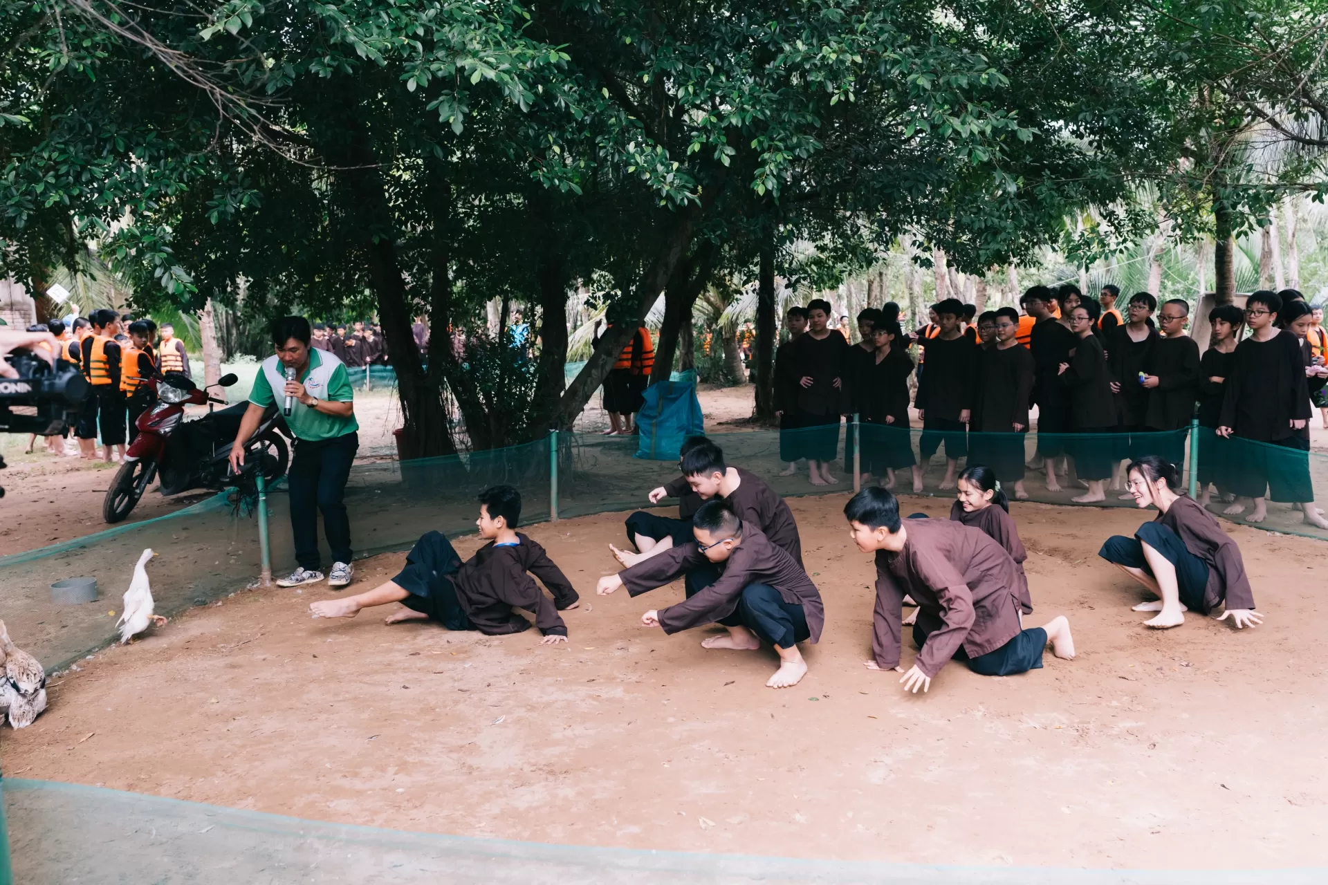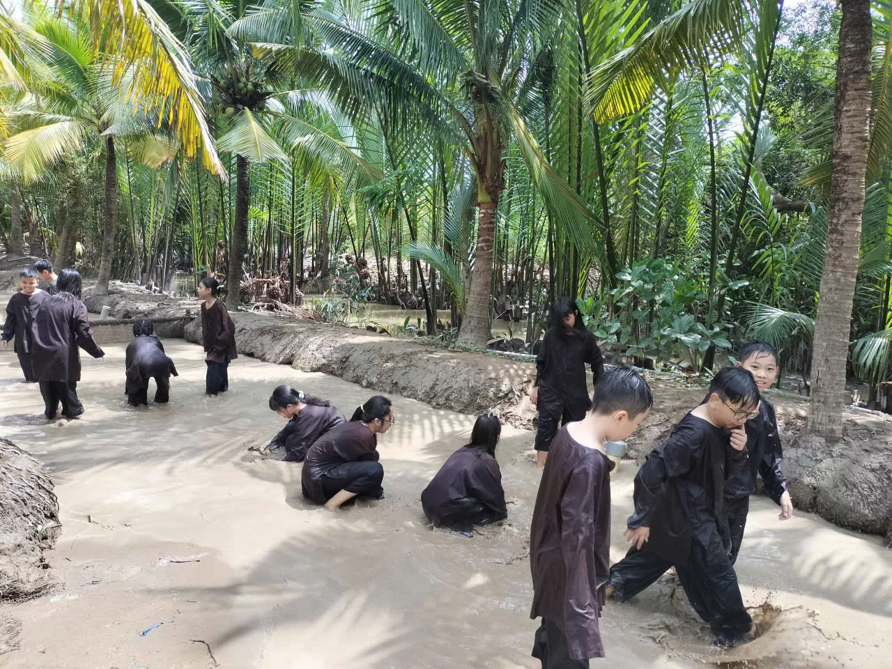 Trong hành trình này, học sinh còn được trải nghiệm “Một ngày làm nông dân” với trang phục áo bà ba và nhiều trò chơi quen thuộc vùng sông nước: đua thuyền trên sông, tát mương bắt cá, cầu lắc, đi dây văng, cầu tre vượt sông, bịt mắt bắt vịt, … Đặc biệt, các em được trải nghiệm nghề truyền thống thắt lá dừa với sự tỉ mỉ và say mê. Những trải nghiệm này đã đem lại nhiều niềm vui và sự gắn kết cho các em, đồng thời cũng tập trung phát huy được nhiều năng lực, phẩm chất cá nhân, tập thể khơi dậy tinh thần đoàn kết, cùng nhau học tập.