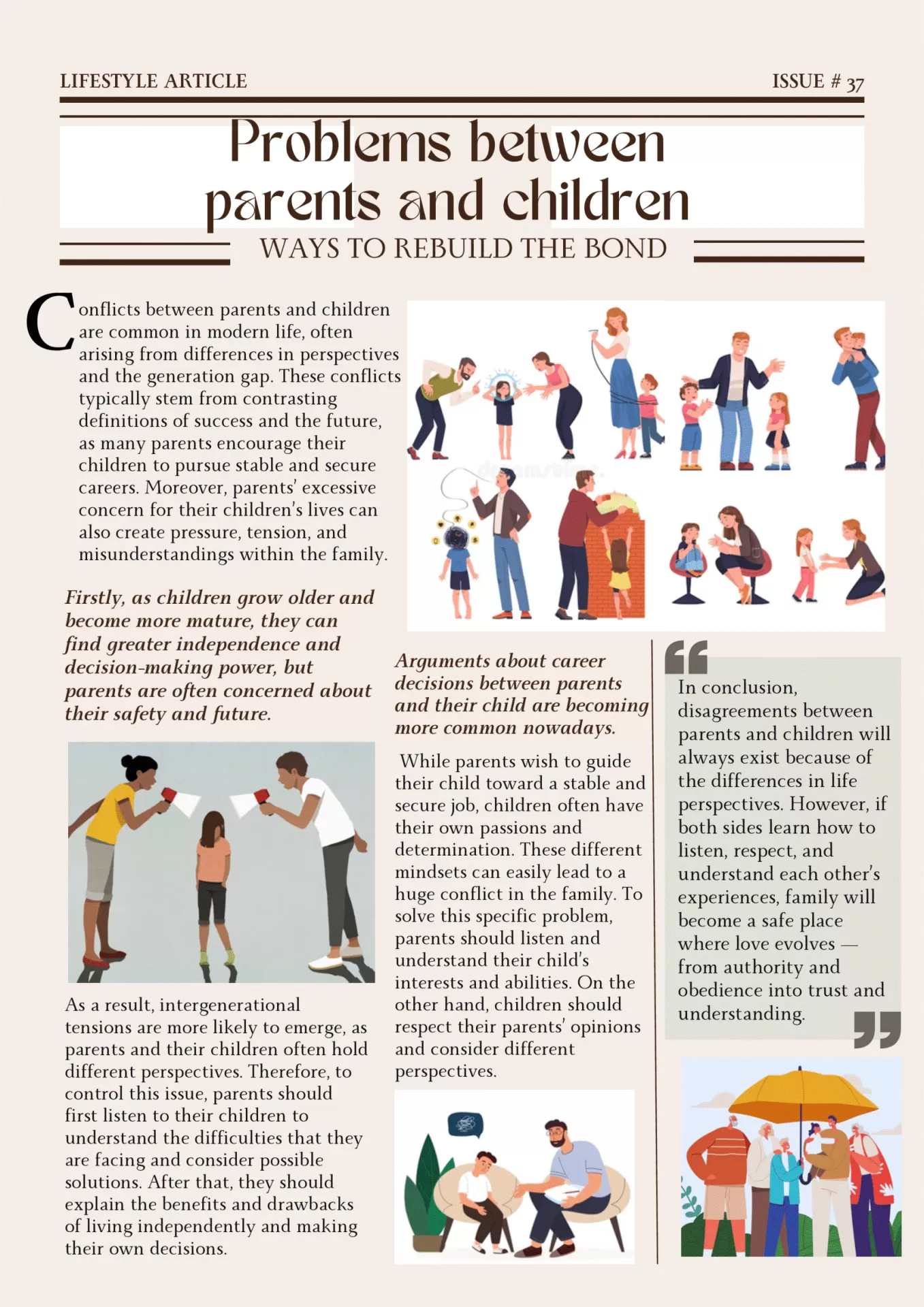 Hoạt động được tổ chức với mục tiêu giúp học sinh có cơ hội nhìn nhận lại các mối quan hệ trong gia đình, nhận biết và suy ngẫm về những mâu thuẫn có thể xảy ra trong gia đình cũng như cách giải quyết chúng một cách tích cực.