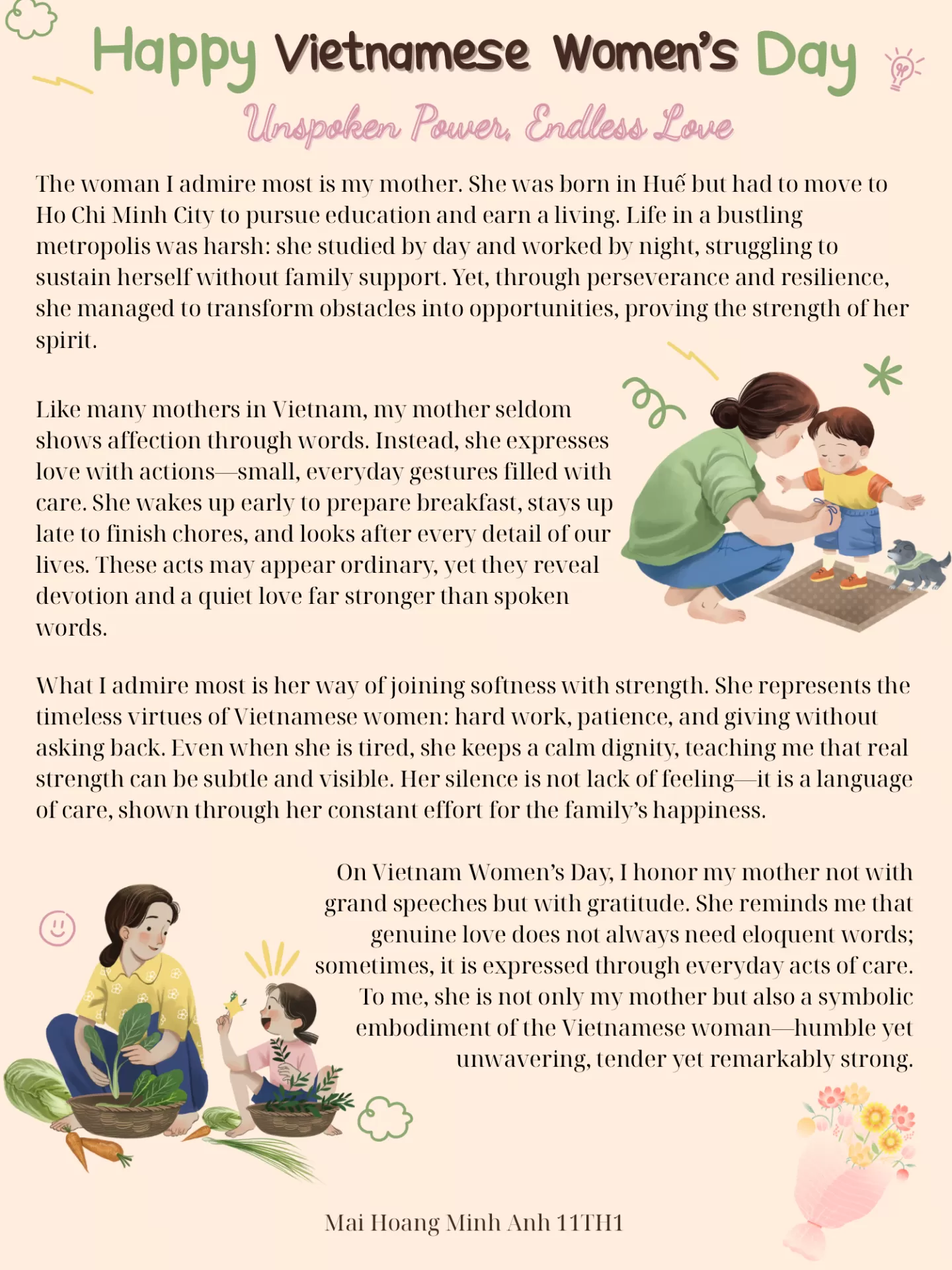 Đặc biệt, để hướng tới Ngày Phụ Nữ Việt Nam 20/10, chuyên đề còn nhằm khơi gợi ở học sinh sự trân trọng và lòng biết ơn đối với vai trò, hình ảnh và những đóng góp to lớn của người Phụ nữ trong gia đình.