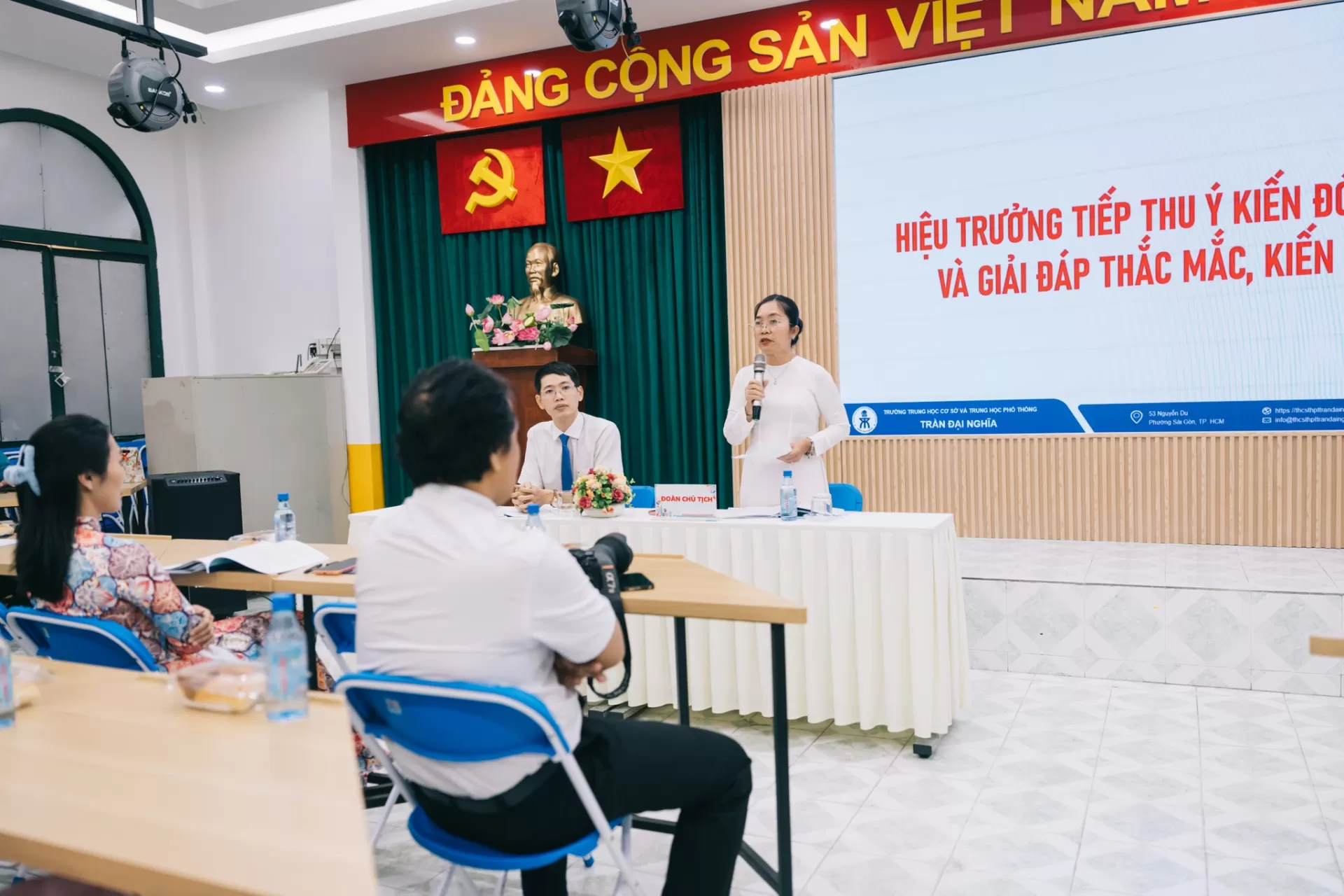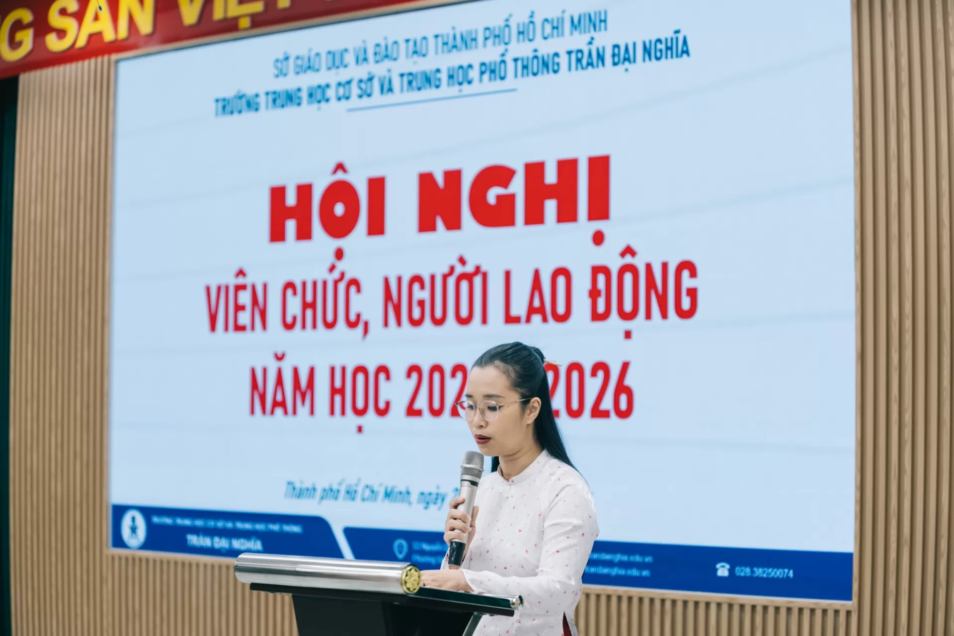 Thực hiện Công văn số 3641/SGDĐT-TCCB ngày 23 tháng 10 năm 2025 của Sở Giáo dục và Đào tạo Thành phố Hồ Chí Minh về việc tổ chức Hội nghị viên chức, người lao động theo quy định của Luật Thực hiện dân chủ ở cơ sở, ngày 22 tháng 11 năm 2025, Trường THCS và THPT Trần Đại Nghĩa đã tổ chức thành công Hội nghị viên chức, người lao động năm học 2025-2026.