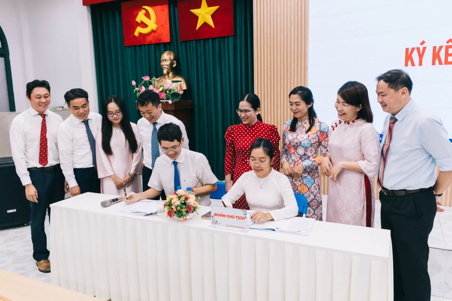 Hội nghị đã tiến hành ký giao ước thi đua giữa Chính quyền và Công đoàn trường, thông qua Nghị quyết Hội nghị.