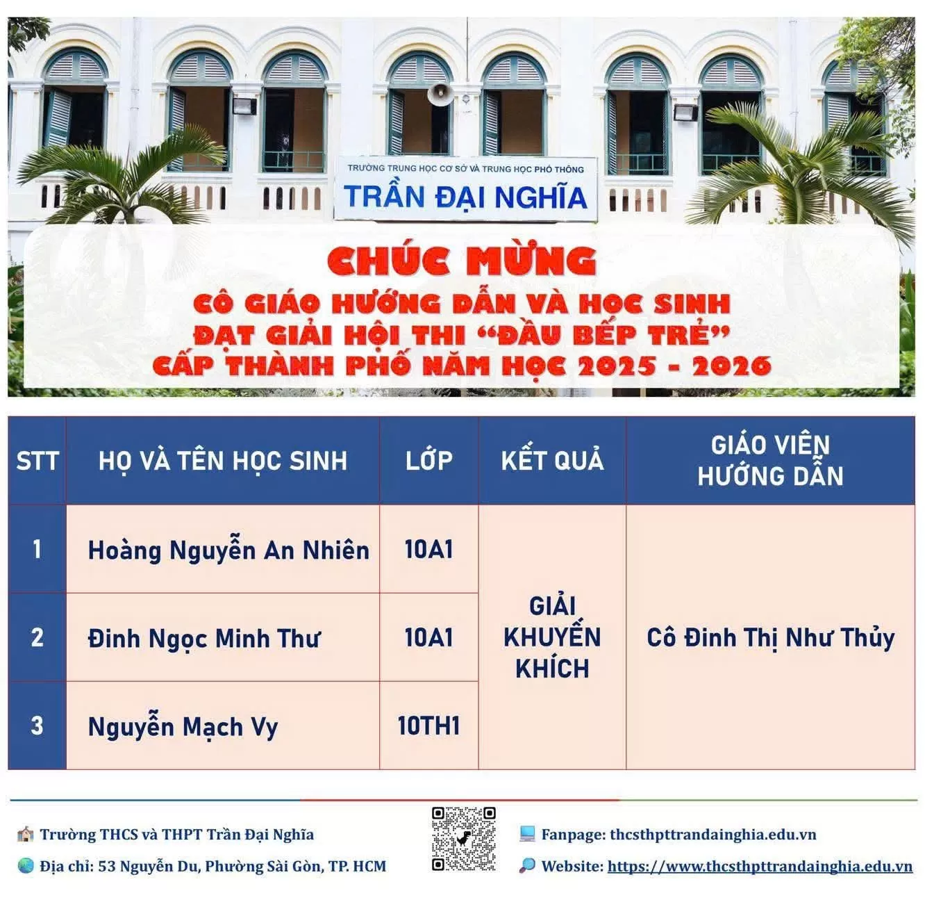 Kết quả Hội thi “Khéo tay kỹ thuật” lần XIII cấp thành phố năm học 2025-2026, môn thi Chế biến thực phẩm (cấp THPT)Chia sẻ: