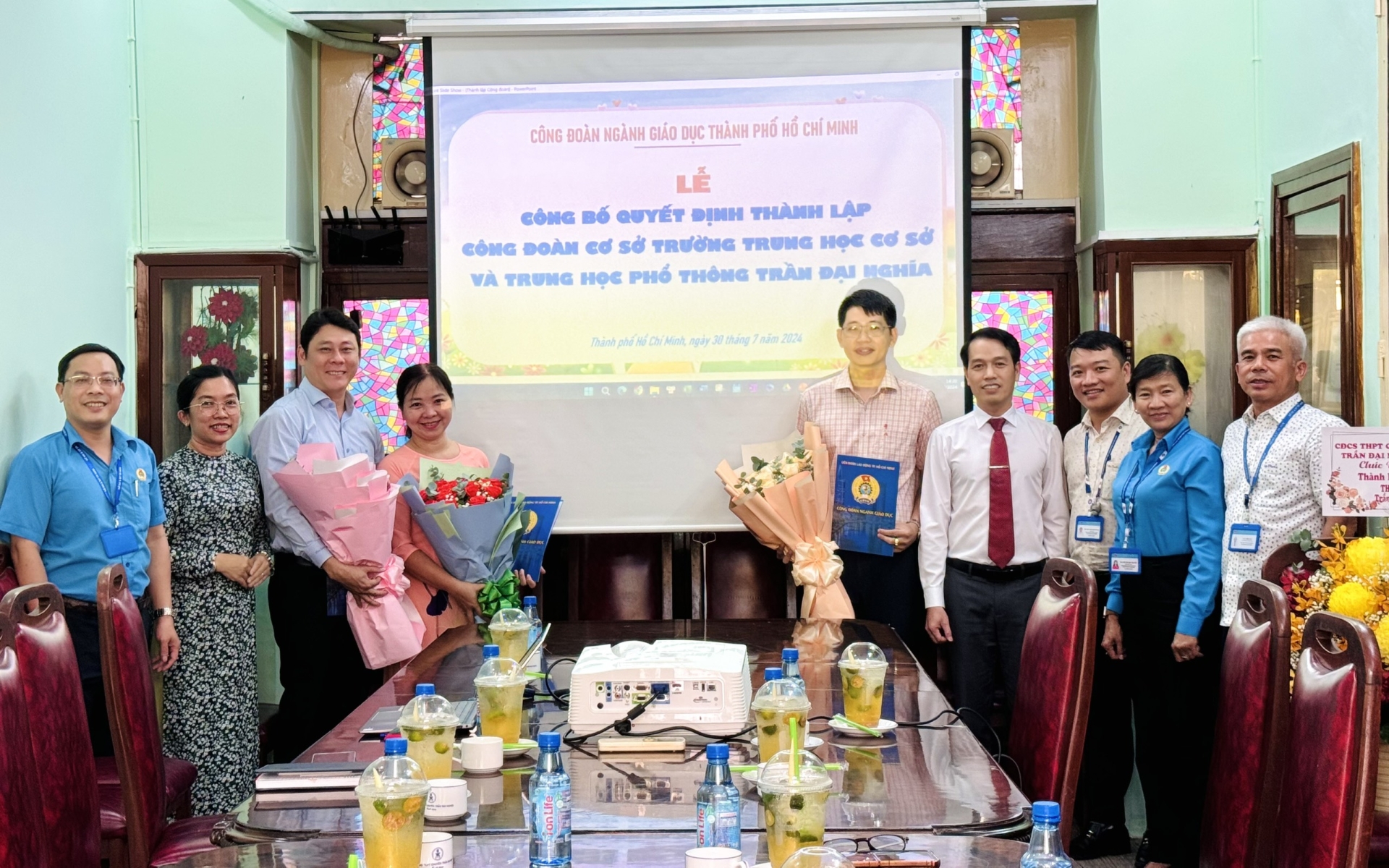 Thực hiện Luật lao động, Luật Công đoàn và nhằm mục đích giữ mối quan hệ lao động ổn định, hài hòa, tiến bộ giữa người sử dụng lao động với người lao động, giữa Ban Giám hiệu với giáo viên, nhân viên và người lao động cũng như tham gia công tác thi đua - khen thưởng trong ngành Giáo dục - Sở Giáo dục và Đào tạo Tp.HCM. Được sự đồng ý của Ban Thường vụ Công đoàn Ngành Giáo dục Thành phố Hồ Chí Minh ngày 04/7/2024, Công đoàn cơ sở Trường THCS và THPT Trần Đại Nghĩa đã được thành lập.
