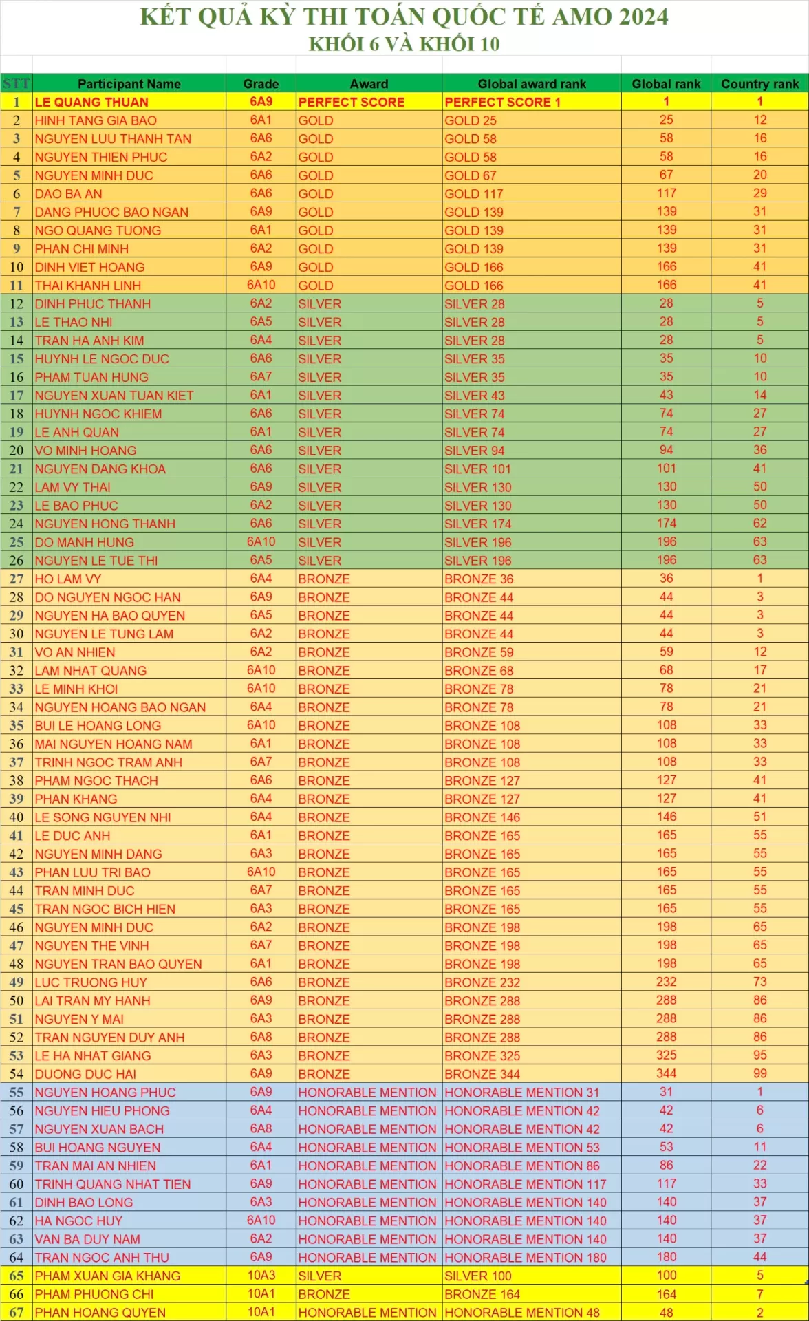Chúc mừng các em Khối 6 và Khối 10 đã đạt được thành tích xuất sắc trong kỳ thi Toán AMO 2024!