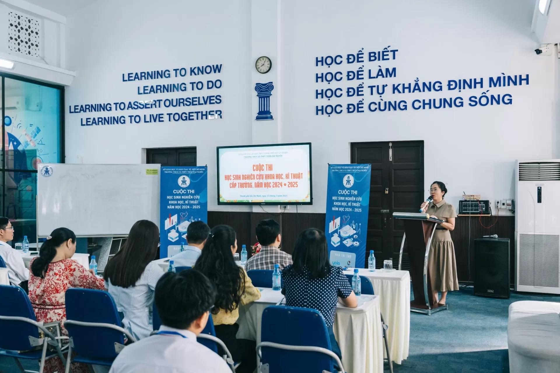 Ngày 15 tháng 3 năm 2025, Trường THCS và THPT Trần Đại Nghĩa đã tổ chức vòng chung kết cuộc thi học sinh nghiên cứu khoa học, kĩ thuật cấp trường năm học 2024 - 2025. Cuộc thi đã được tổ chức chu đáo, trang trọng và thành công tốt đẹp. Các em học sinh đã bình tĩnh, tự tin và trình bày tốt phần thi của mình. Ban Tổ chức cuộc thi trân trọng cảm ơn quý vị đại biểu, quý nhà tài trợ, quý Ban Giám khảo, cha mẹ học sinh đã nhiệt tình tham gia và hỗ trợ hoàn thành cuộc thi.