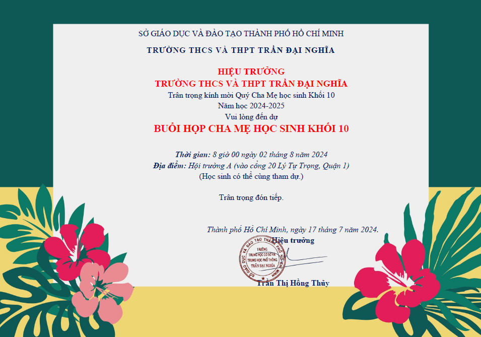 THƯ MỜI HỌP CHA MẸ HỌC SINH ĐẦU NĂM, KHỐI 10, NĂM HỌC 2024-2025THƯ MỜI HỌP CHA MẸ HỌC SINH ĐẦU NĂM, KHỐI 10, NĂM HỌC 2024-2025Chia sẻ: